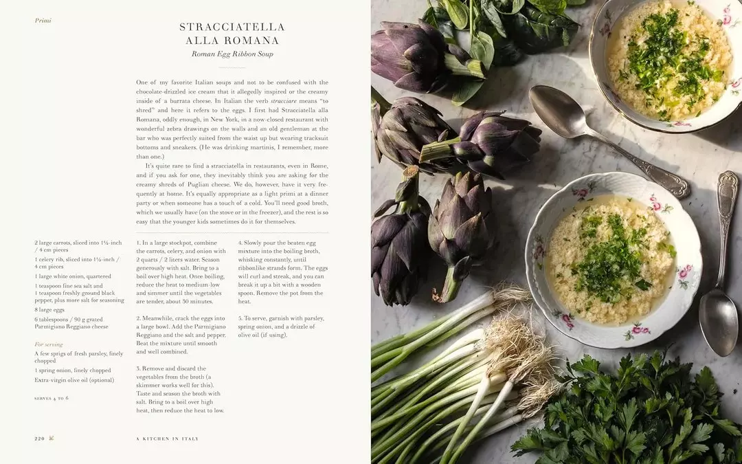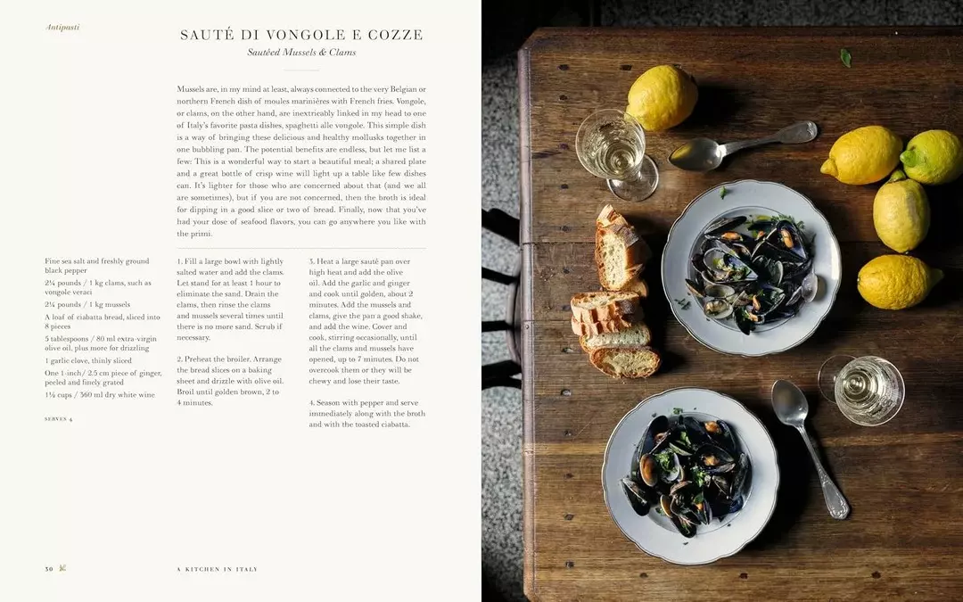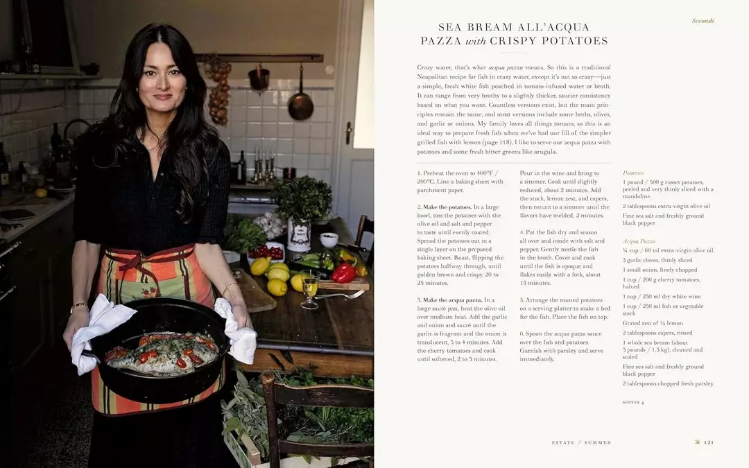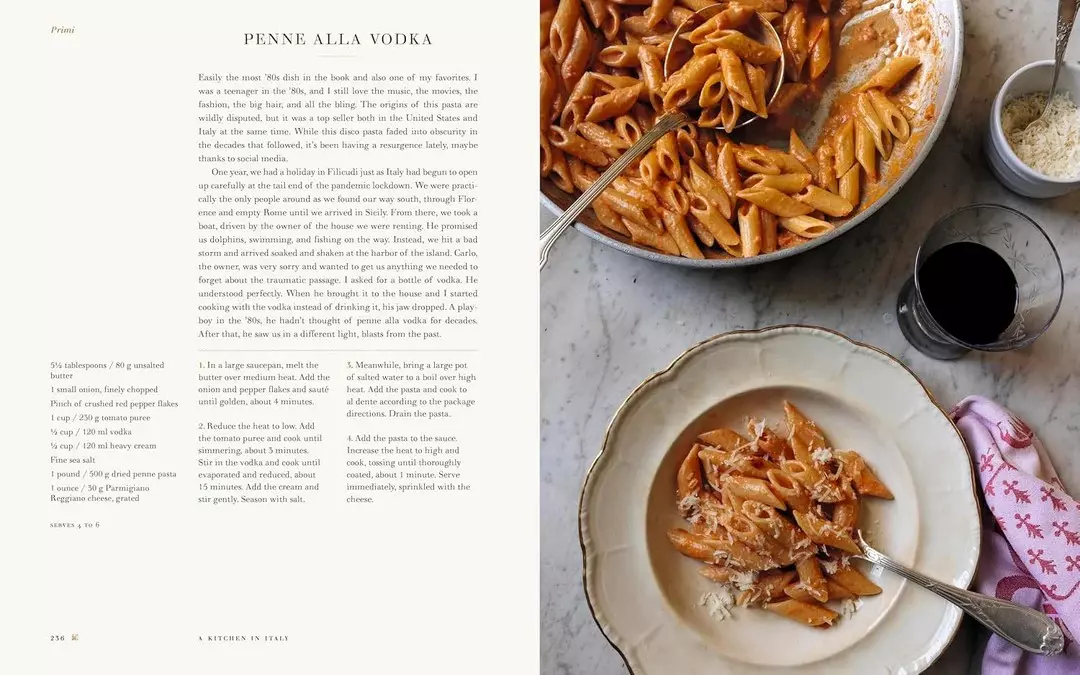 Fra vårens Risi e Bisi til sommerens Spaghetti alla Nerano, høstens bakte tagliolini med prosciutto og vinterens hvite sjokolade- og pistasjkaker, feirer boken sesongens råvarer og italiensk matkultur. Oppskriftene spenner over antipasti, primi, secondi og dolci, og passer både til hverdagsmåltider og festlige anledninger.