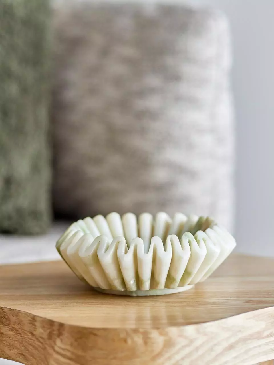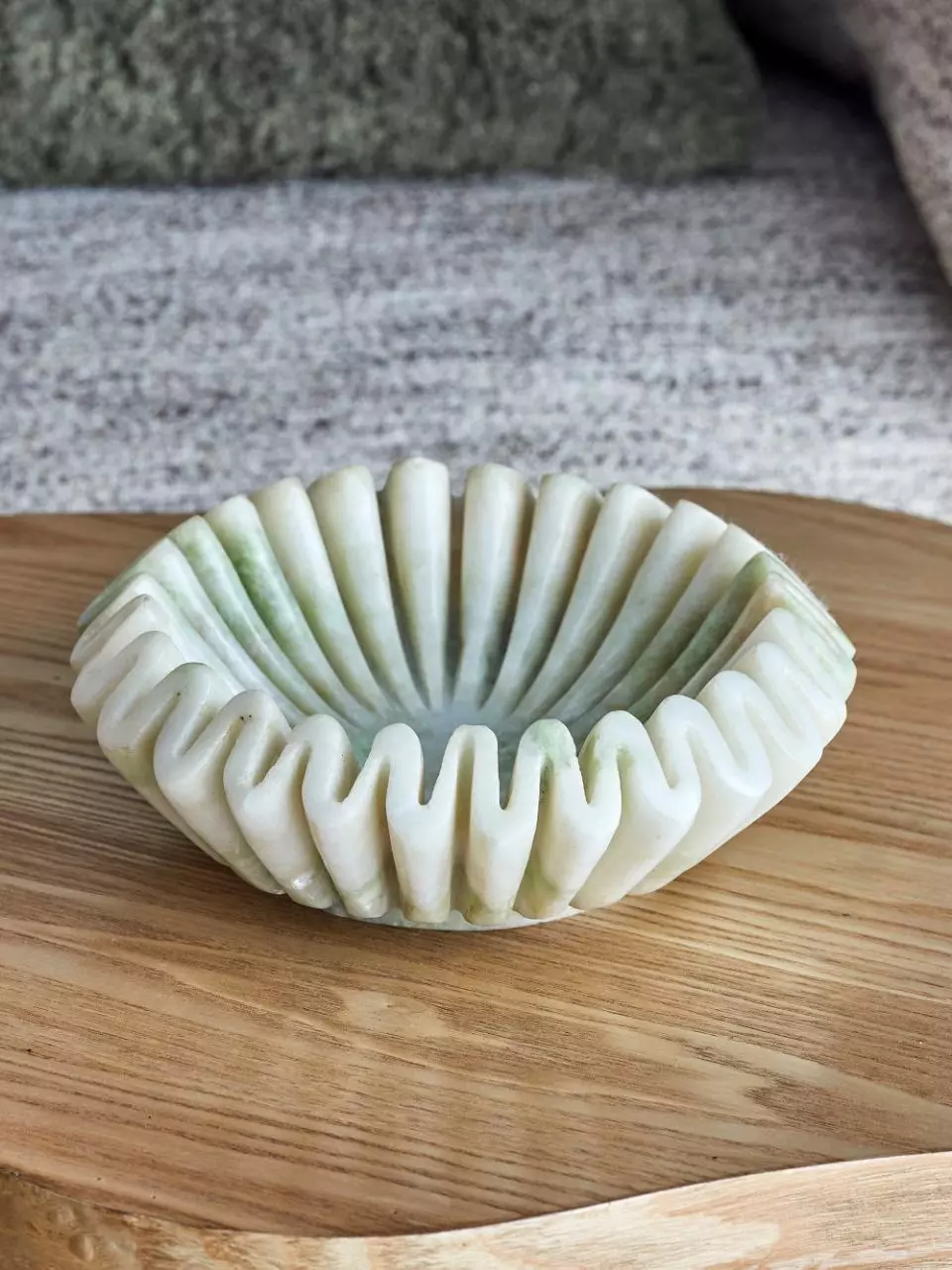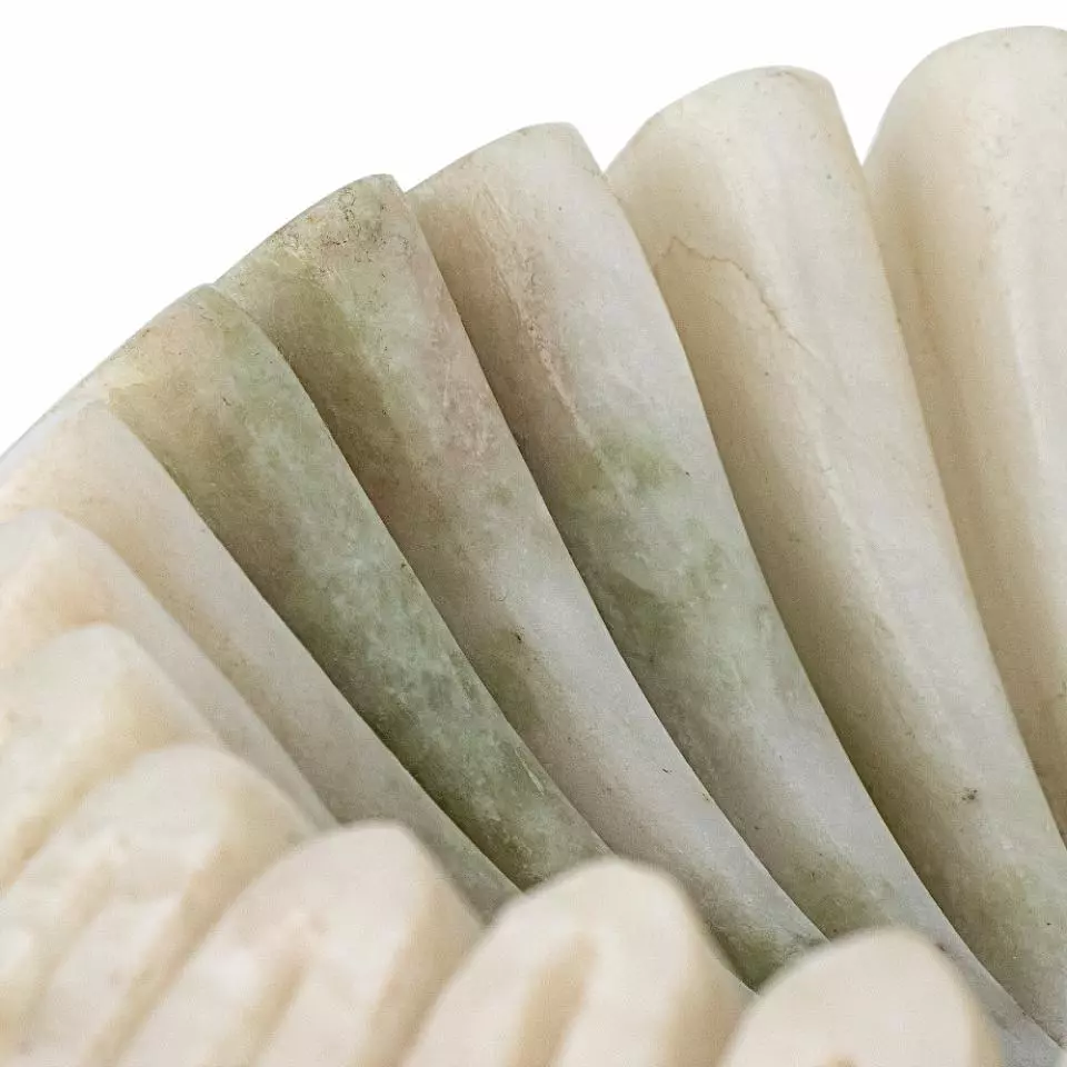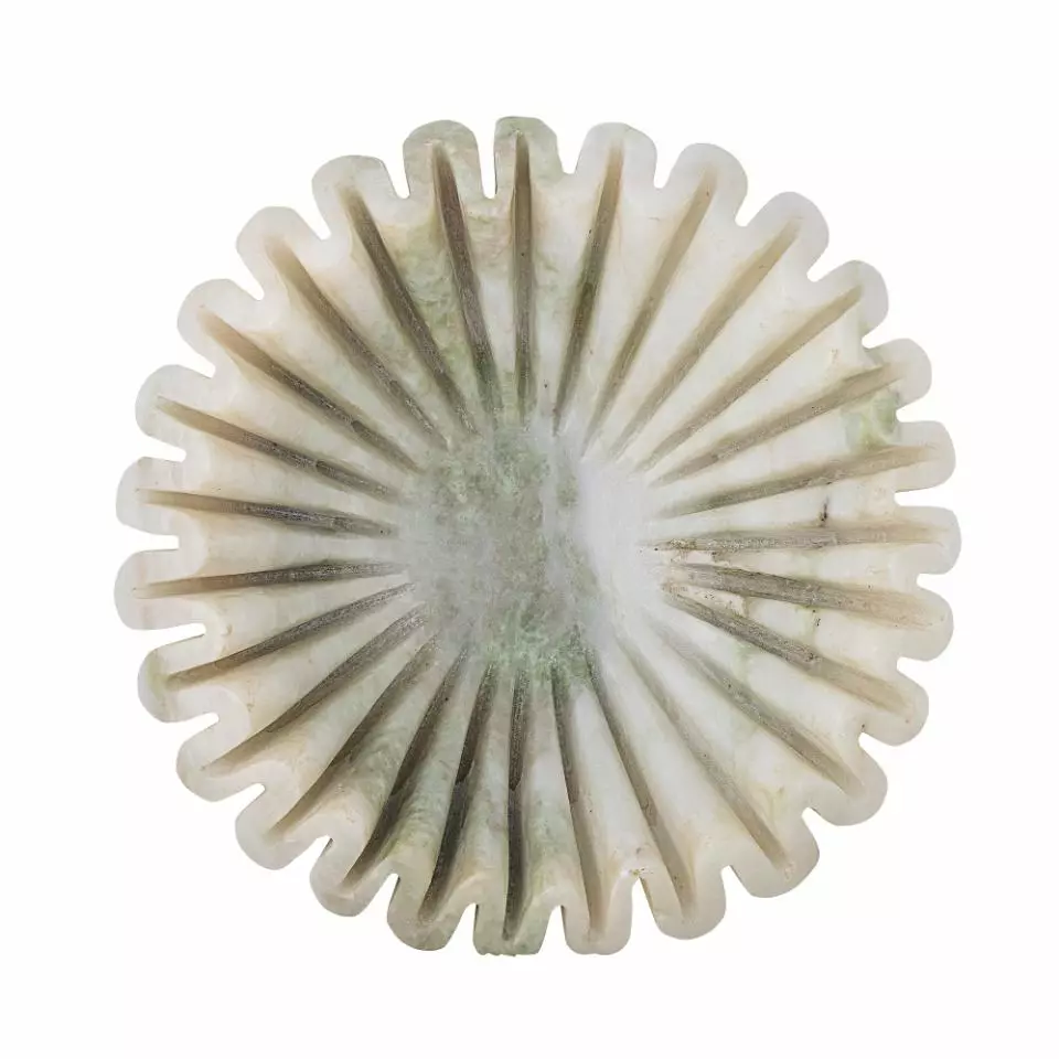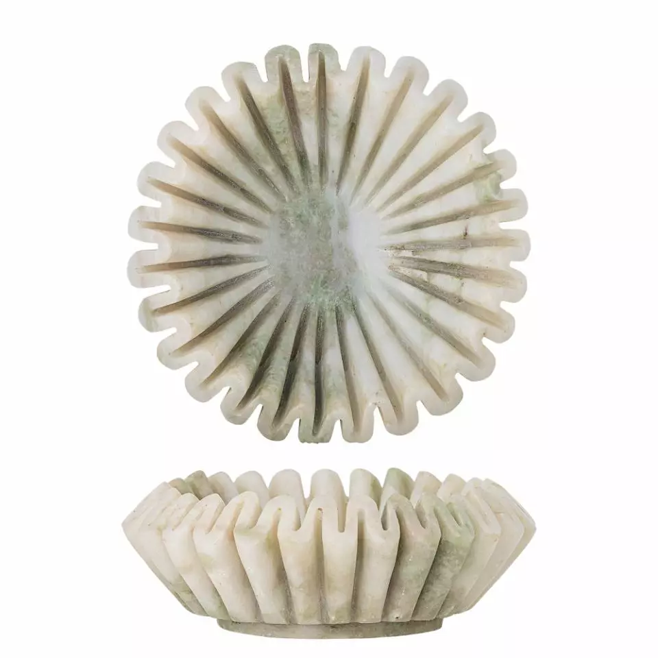 Marmorskål med bølgefarget kant.
