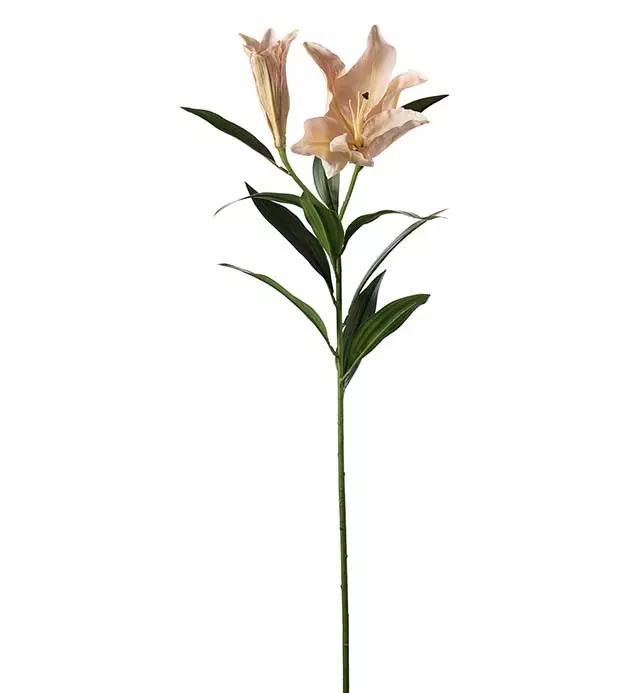 Lang lilje på stilk med ferskenfarget blomster.