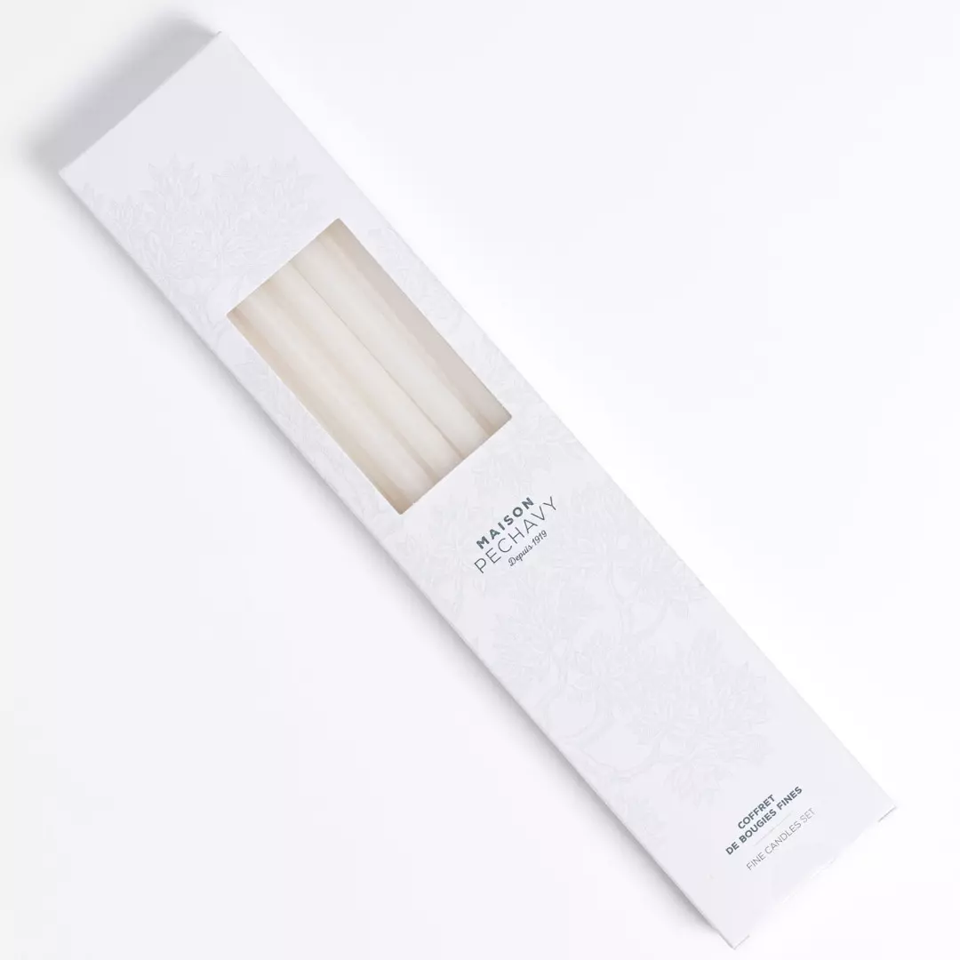 Sett med 10 stk tynne, håndlagde lys. Kommer i en pen eske.