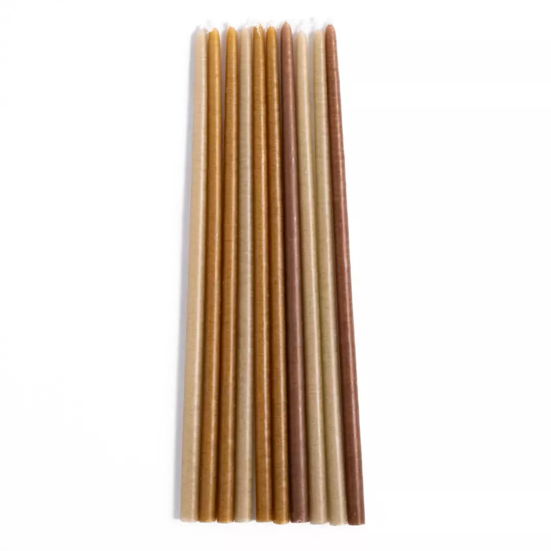 Sett med 10 stk tynne, håndlagde lys. Kommer i en pen eske.