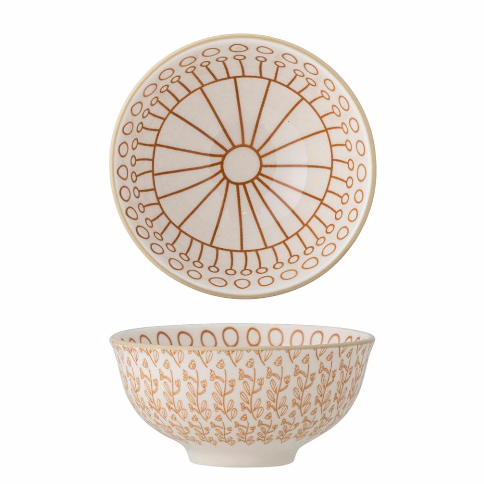 Håndmalt skål med et herlig oransje mønster. Mix og match med servise i andre farger og mønstre for et personlig og hjemmekoselig preg på borddekkingen. Mønsteret er håndmalt.