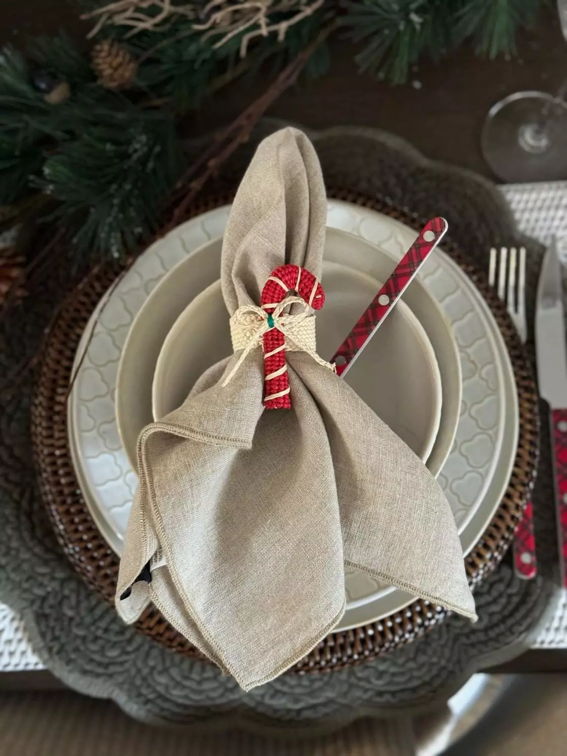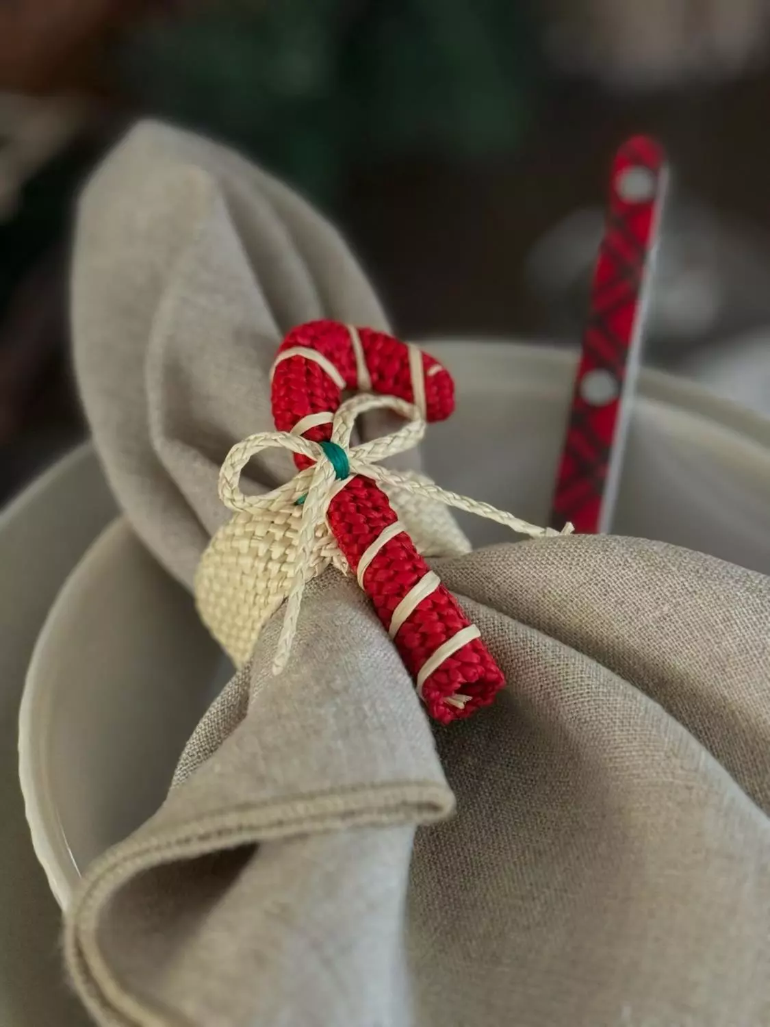 Håndlaget serviettring med «Candy Cane».