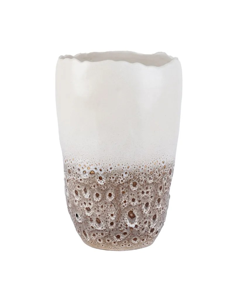 Dekorativ håndlaget vase med valkuanisk uttrykk nederst.
