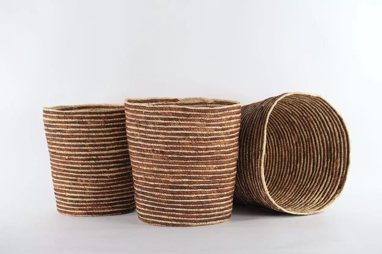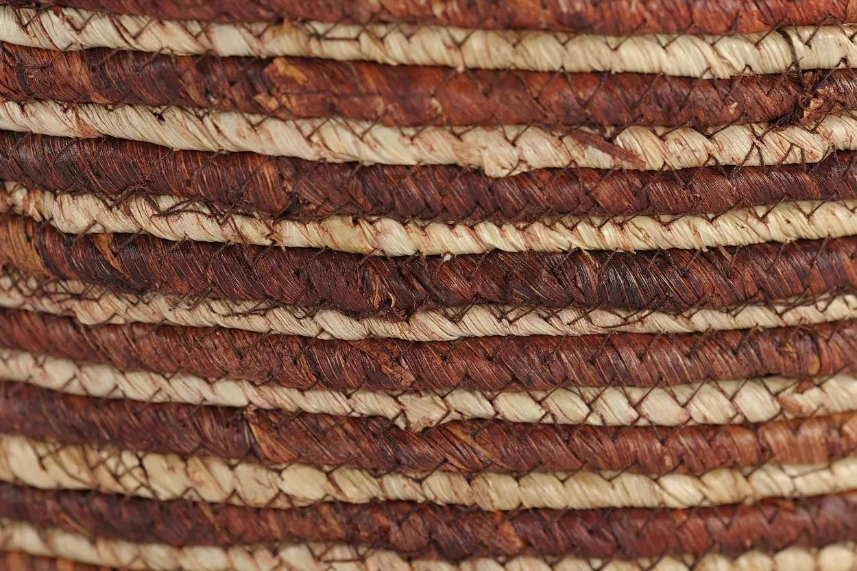 Kurvt i flettet materiale med en varm, gyllen tone som minner om maisstrå. Perfekt til oppbevaring, dekor eller planter.