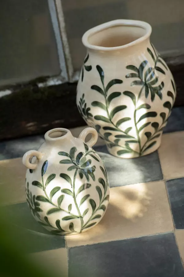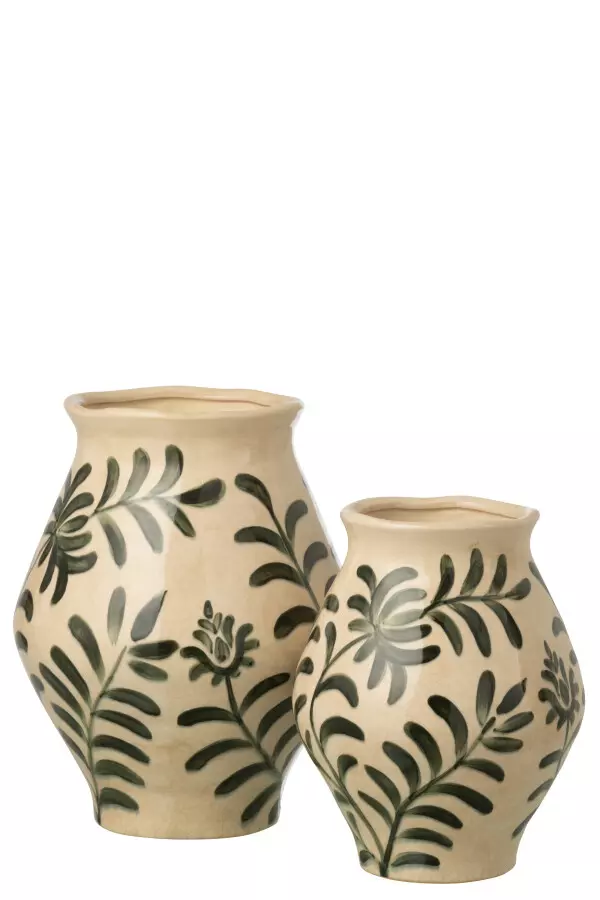Vase Leaf Stoneware Green/Wh 25,5×25,5xh31,5cm 63153