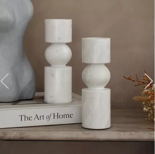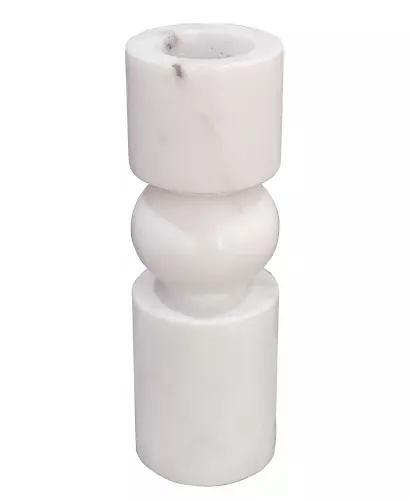 Lysestake i marmor til telys. Vivian lysestake er laget av naturlig hvit marmor og har en stablet, geometrisk form med mykt avrundede kanter.